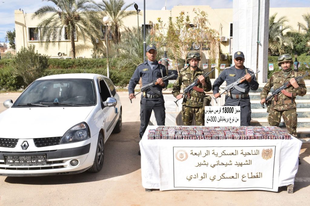 وفي مجال محاربة الجريمة المنظمة، تمكنت مفارز الجيش من توقيف 26 تاجر مخدرات، وإحباط محاولات إدخال 10.98 قنطار من الكيف المعالج عبر الحدود مع المغرب، مع ضبط 2.284.797 قرص مهلوس.