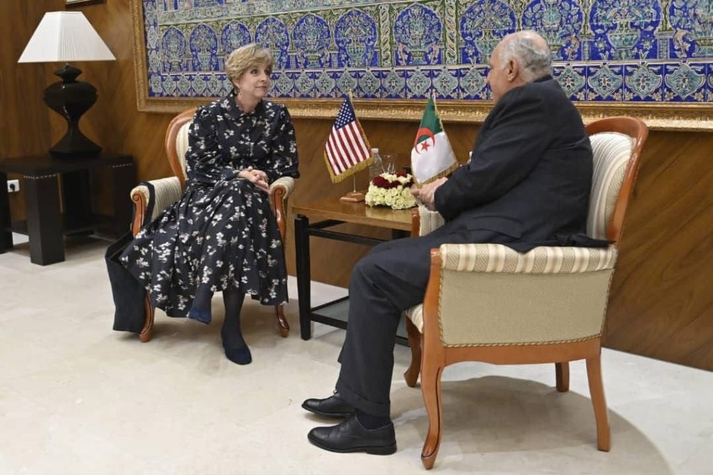 بوابة الجزائر الإخبارية: بعد أربع سنوات من العمل الدبلوماسي، قامت إليزابيث مور أوبين، سفيرة الولايات المتحدة الأمريكية بزيارة وداع إلى وزير الخارجية أحمد عطاف، وذلك على إثر انتهاء مهامها في الجزائر، وفق بيان للوزارة الخارجية الجزائرية.